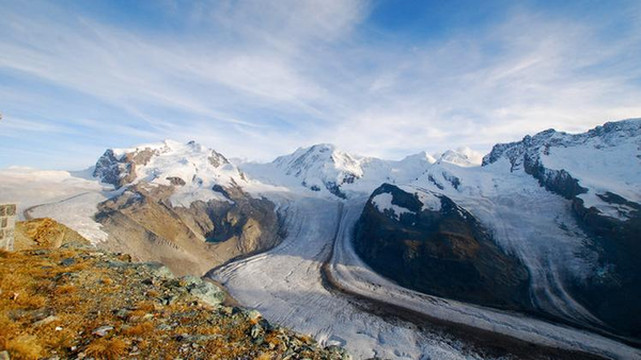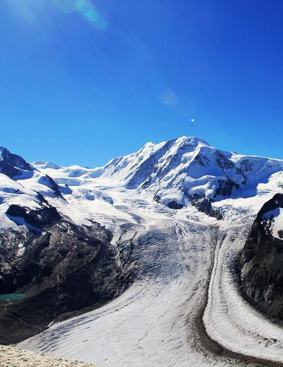 从山脚到山顶可以饱览一年四季的美景,包括各种形态的植被。在这里不单单能看到清晰的马特洪峰,还能看到宏伟的冰川,虽然全球变暖,冰川日益在消融着,这个地方仍然是近距离看冰川的一个绝佳场所。