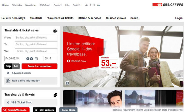 瑞士的城际交通系统非常发达,火车是主要的瑞士境内主要的交通工具。城际间火车或汽车班次间隔约为1个小时,像日内瓦-这类的交通干线,间隔甚至能达到10分钟一个班次。山间小镇的邮政巴士也基本能保证每小时一个班次。瑞士联邦铁路的官网上可以查询到火车渡轮及邮政巴士的时刻表及换乘细节。各火车站的具体营业时间及所提供服务可以通过联邦铁路的官网查询。