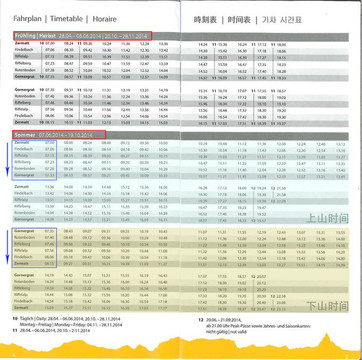 冬季:http://www.glacierexpress.ch/EN/timetable_tickets/Timetable/winter/Pages/default.aspx