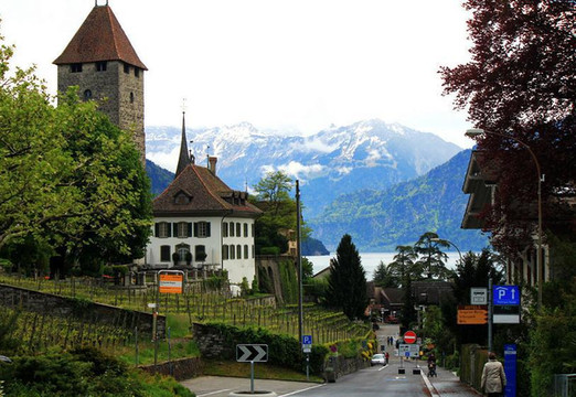 施皮茨号称瑞士最美的小镇。位于图恩湖边儿上,属于交通要道,可以坐船过去也可以坐火车到达。高耸的阿尔卑斯山,以神秘感著称的湖泊,清冽的水和清新的空气,构成了这片美丽的土地。小镇不大,可四处逛逛,有宁静的港湾。从火车站可以俯瞰整个小镇。图恩坐船到施皮茨,湖上风光妙不可言,烟水蒙蒙恍入仙境。