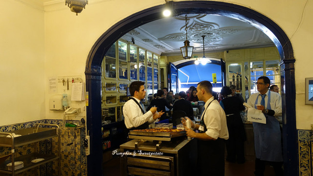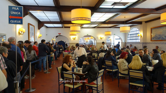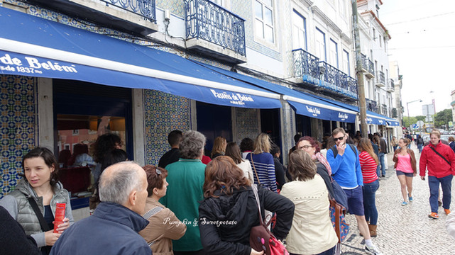 地铁换有轨,极其的方便,当你看到一个很巨大的教堂式建筑时就下车吧,早一站晚一站都没关系,一站路走走都很近的~~~然后你就一定会看到很多人在一块蓝色的阳棚下排队,这就是著名的“贝伦蛋挞店”了,据说是葡式蛋挞的鼻祖,开了NNN多年了都,还是老味道……