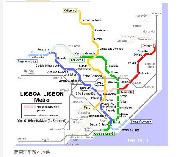 里斯本的地铁一共就四条线,简单易懂,换乘方便