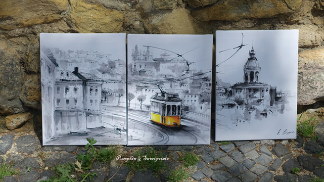 还有,街头的艺人也会已叮铛车作为里斯本的元素进行创作……