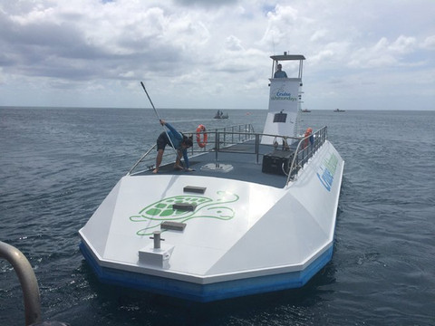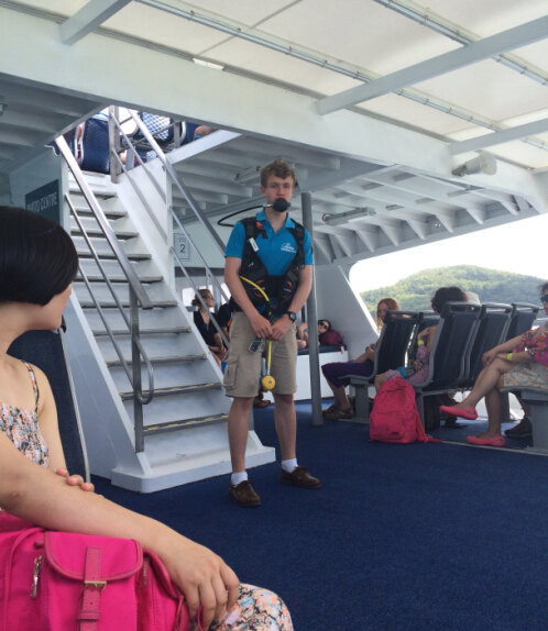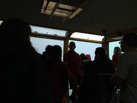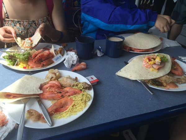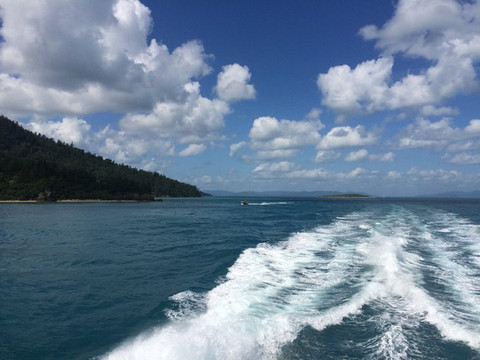 一上船,就有工作人员带着我们坐到一日游专属座位上,每个人发一个午餐包,里面有水,饼干,橙子,卷饼(不知道到底叫啥,包着蔬菜跟火腿)还有一杯酸奶。之所以要坐到指定的位子是因为我们中途要换成小快艇去到观景台和希尔湾,提醒大家在换快艇之前,先在大船上把防刺服拿着,因为之后的快艇上不提供的~~~浮潜会被晒伤。。。我们就没有拿,所以这一天晒得最厉害,背整个大脱皮。。。