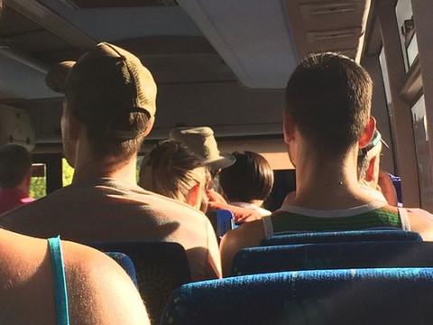 还是一大早在酒店门口等旅游公司的车来接,我们每次要出海的话都会把酒店的浴巾一个人带一条去~垫在沙滩上睡觉或者擦干身上的海水~~~晚上回酒店了再用洗衣机一搅,第二天接着用~方便呀~