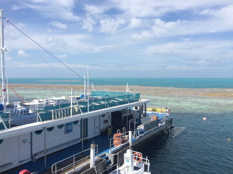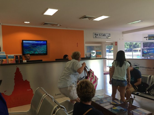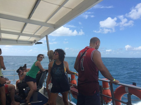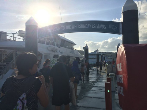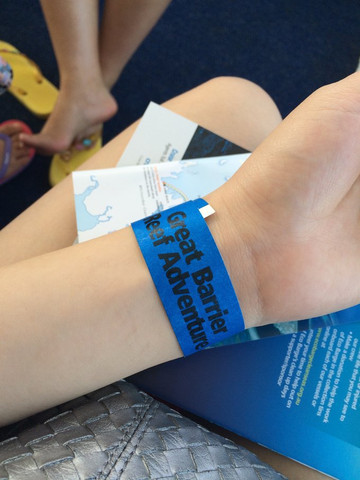 还是跟去大堡礁一样,到前台自助CHECK IN ,每人发一个手环,我们报的是一日游所以手环上写的FULL,方便工作人员分辨一日游和半日游。(经过了几天的暴晒,我的手已经很明显红黑红黑的了。。。苍老了许多啊
