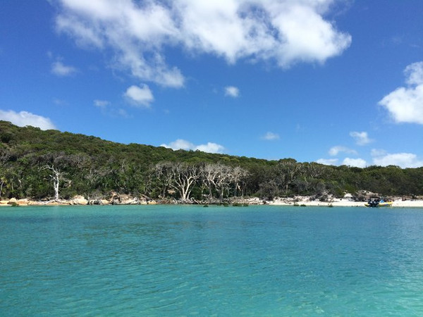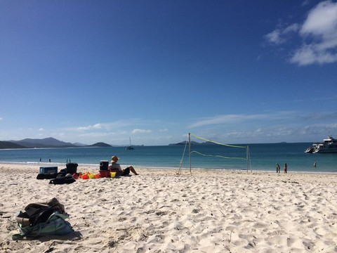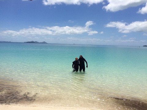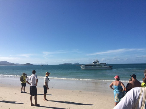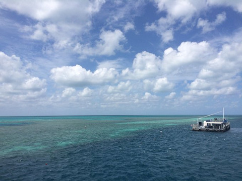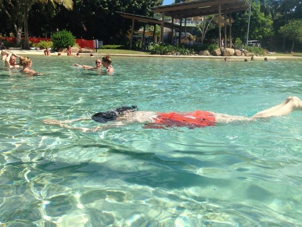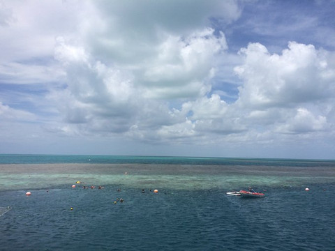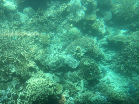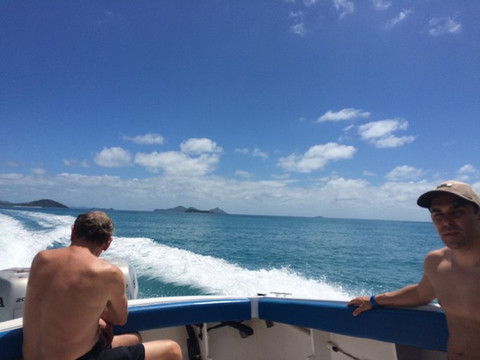 玩了一会,快艇又来了,把我们接到了浮潜的地方。感觉这次浮潜看到的鱼和珊瑚礁比前天在大堡礁看到的更多,而且很近,珊瑚都是会动的,五颜六色,特别好玩,可是小嫂子们觉得很怕,因为我们都没有穿防刺服,怕珊瑚碰到自己的那种触感,,,(所以大家一定要在大船上拿防刺服,还可以防晒,一举两得~)浮潜点我没有照相哈,根本没空照相,哈哈哈