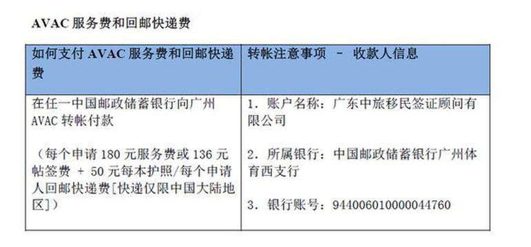 签证服务费(AVAC服务费)和回邮快递费(180+50=230元)一本护照收50元,两本护照收100元,以此类推。