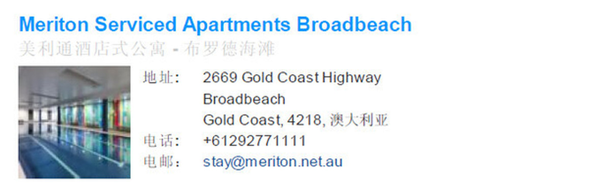 酒店名称:meriton serviced apartments broadbeach(美利通酒店式公寓布罗德海滩)
