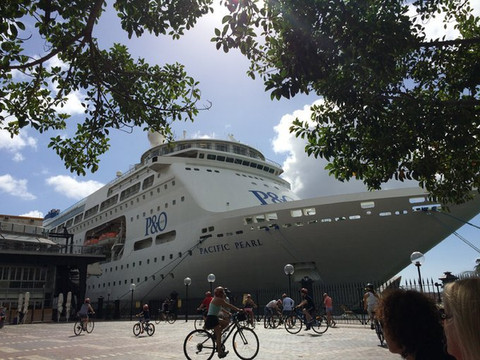 我们住的酒店在唐人街附近,所以有种置身香港的感觉,全是亚洲面孔,参杂着外国人面孔,招牌全是中文~店员也大多是华人,讲中文毫无压力。这天正好是星期六,情人港有烟花看,我们吃完饭就往情人港走,离酒店也不远。