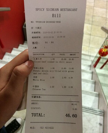 对于国内来说,这价格确实高了点,一盘酸辣土豆丝就要五十块人民币,一碗饭要小十块,但是既来之则安之,不要想汇率!你会觉得哇塞!!!这也太划得来了吧!!!