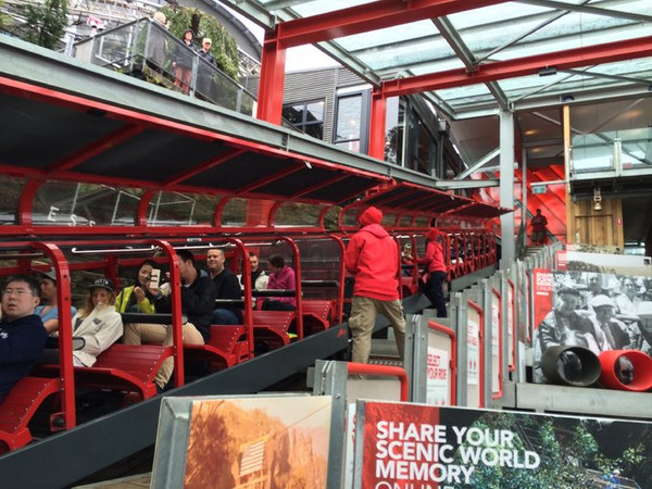 我们上了黄色的缆车(SKYBUS)去到景观世界(SCENIC WORLD)排队买缆车套票,我问他YHA卡能不能打折,她说NO DISCOUNT。。。我也就没有把YHA卡拿出来。。。直接买了全票,现在想想是不是我没有表达清楚YHA卡是个什么玩意,因为大家攻略里都说了可以打折的呀,当时真应该把卡拿出来问一下的。。。失策失策!最保险的方法还是在网上先定好票吧,任游网卖的比较便宜~