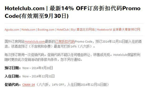 HOTEL CLUB:经常有 优惠代码,八折九折的样子,大多数酒店都能用,举例如下: