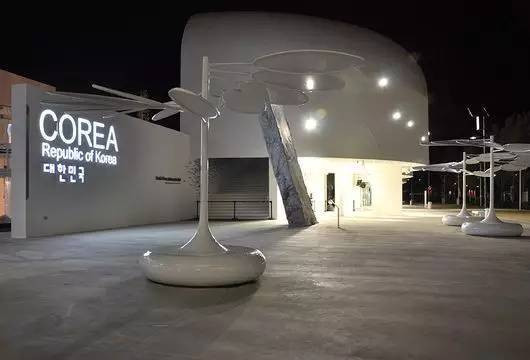 韩国馆的灵感来自于韩国传统陶器,外形看上去就是一个巨大的“月亮坛”。整体造型及结构设计是为了造成它是漂浮的错觉。这个展馆侧重的问题是:“在未来,哪些食物应该作为可持续消费?”这次展览还介绍了和食品相关的问题,比如肥胖和饥荒。