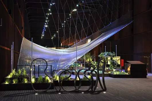 巴西馆游客可以享受多感官的互动体验,在展厅上方的巨网上深一脚浅一脚的前行,然后进入一个大型室内空间。上方悬网给游客独特的视角来观赏下面的“绿色画廊”,这是由一系列的鲜花、水果方盒组成。还有各种悬挂植物,就像数百种不同的鸟窝。