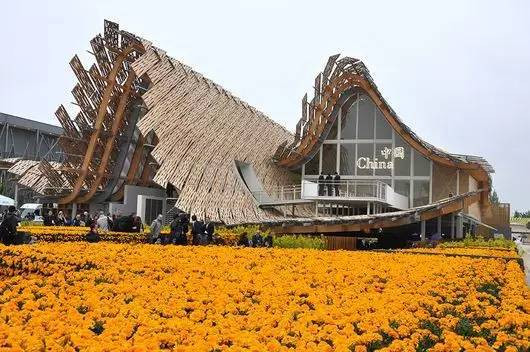 起伏的中国馆是由清华大学艺术与设计学院和纽约建筑师工作室Link-Arc合作设计完成。展馆名为“希望的田野“,展示了中国农业的进步和健康食品的供应。在4590平方米的展馆,包含三个主题:“大自然的礼物”、“生命之粮”和“技术与未来”。
