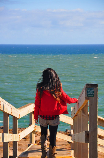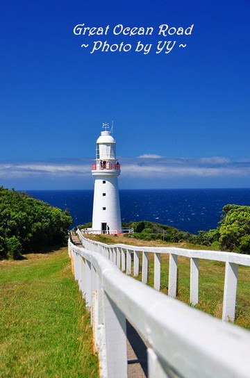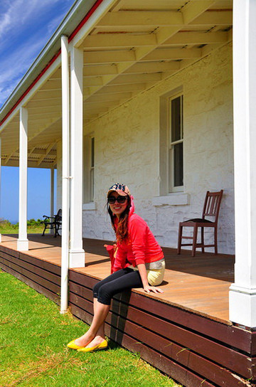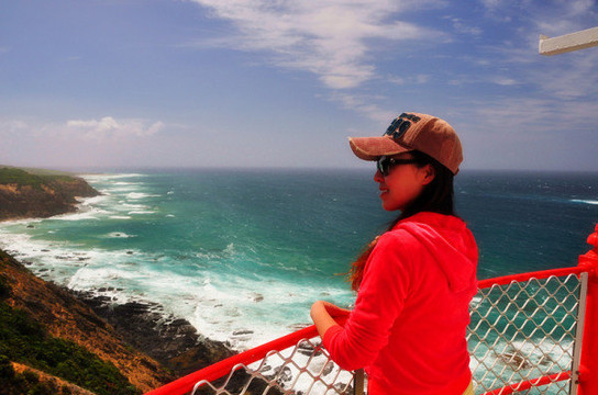 这张是第一次来Cape Otway的时候拍的,那小小的背影就是丫丫小姐我。自己非常喜欢这张,很有明信片的感觉。右手边那房子其实是给灯塔管理员住的地方。