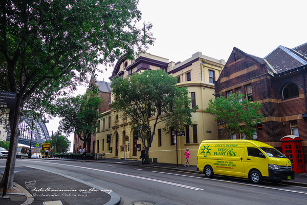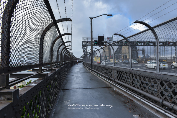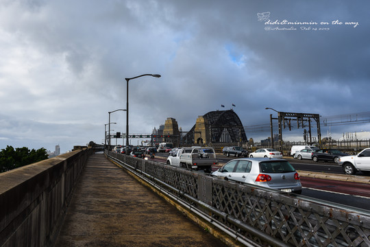 今天看到了阴天的悉尼,昨天短短一天,足以让我们爱上了这座城。在悉尼的最后半天,我们准备去家旁边的悉尼大桥走一圈。公寓楼周边的一片街区都是富人区,楼价也相对较高,环境好的出奇,空气清新,人口密度小,街区也很干净。步行十分钟,就走到了悉尼大桥的北端,天空开始飘起细雨,大桥上有专门的行人步行通道,上班族和跑步健身的人穿梭于此。大桥的南端便是悉尼最古老的城区——岩石区。