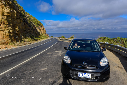 下午两点多飞抵墨尔本,跟在凯恩斯一样,墨尔本的自驾车辆也是从国内网站上预定的,租车公司换成了ALPHA,租车程序跟EAST COAST基本一致,也是到达机场的时候给租车公司打电话,约定接客地点等候班车送达租车公司取车即可。墨尔本机场比凯恩斯机场要大很多,跟租车公司电话沟通后,约定在Shuttle Bus等候,但我们找了半天也没有找到Shuttle Bus的站牌,期间还闹出了一个可笑的乌龙。正当我们着急的时候,看到了一排标有各个租车公司LOGO的面包车停在国际出发正对着的停车场,仔细看去,紫色的ALPHA的班车就在其中。原来,跟凯恩斯不同,墨尔本机场的租车班车是长期停靠的,所以仔细找一下就可以找到。核对完信息后,我们上车前往租车公司。到达后,便开始办理取车手续,预订单、驾照原件、公证件、信用卡等证件一样也不能少,当然同时还会用信用卡预授权100澳币作为押金。万事俱备,准备接车,这次的爱车是个黑色的小尼桑,比凯恩斯的那辆排量要小些,但价格真心实惠。插上GPS,连上Google地图,双保险,出发!