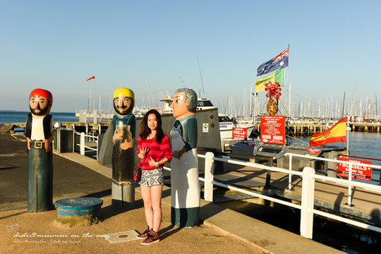 说说对Geelong的印象,据说这里是墨尔本周边第一大城市,规模在咱们国人看来也就是个小县城的大小,但是环境、规格、设施却相当高,围着小镇转了一圈,很快就喜欢上了这个安静的地方,蓝蓝的大海,静静的,白色风格的栈桥和码头与她相得益彰,海边随处可见的木头人偶和见到人类毫无畏惧感的海鸥更为这里的风景增添了灵动的气息。孩子们在草地上踢球、玩耍,下班的大人们沿着海边慢跑,一切都是那么惬意、自然。很快我们就认定,这是我们喜欢上的第二座澳洲城市,比起悉尼,这里其实更适合居家生活。天色已晚,只能与这里匆匆作别,去超市补给一下今明两天的食物,又是满满的收货
