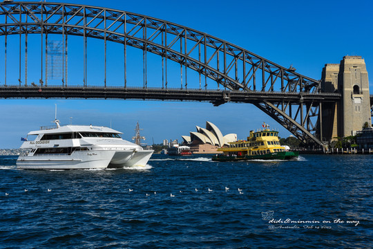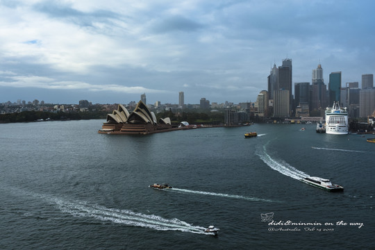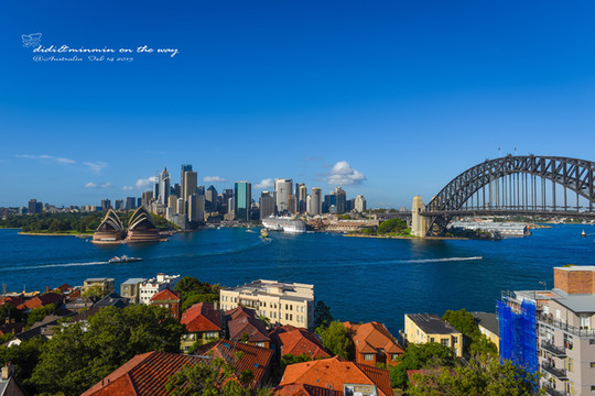 悉尼的早晨,天亮的并不是很早,微风吹进房间,清新的空气、温暖的阳光,唤醒了稍有疲惫的我们。窗帘外,是画里见过的蓝天、白云,侧目而望,悉尼大桥近在咫尺,一切都是我们喜欢的样子,像是早已经习惯了的情景,是我们想象里的生活。