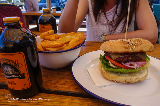 在M的推荐下我们在Lone吃了午饭,澳洲的食物量真的很足,一份汉堡、薯条就足以把我们喂饱。