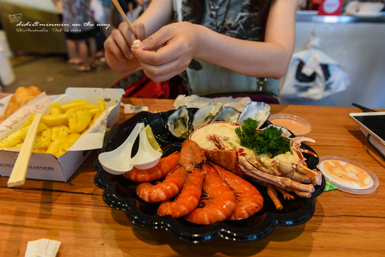 CBD里的全部公交车辆都是免费的,其实也就几站地的距离,但却很方便。我们尝试性的穿越了一下CBD,不到十分钟的功夫就到达了CBD的另一端。澳大利亚的最后一晚,我们决定再吃顿好的。澳洲的夜生活再次令我们震惊,刚过六点,闹市里的大超市、大商场、饭馆基本就可以关张打烊了。本来想再吃一顿澳洲牛排,走了三条马路都没有见到一家,简直是服了。