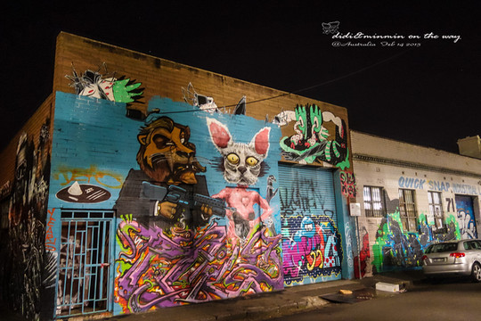 住宿与印象:说实话,墨尔本的家我们并不是很满意,位置稍微偏僻不说,关键这是由一个车库改造的平方,面积不大,屋里潮湿,还有股发霉的气味,着实不太喜欢这样的居住环境。好在最后一晚,停留时间也不长,所以就忍忍住下吧。不得不提的是,我们住的是典型涂鸦街区,涂鸦艺术家们把这里的每一面墙都画上了个性的图案,看上去真的很cool!也是我们第一次感受到国外的涂鸦文化。