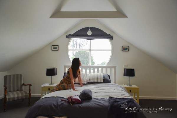 住宿与印象:每一个airbnb的主人在临近预定期的几天都会给我们发确认信,交代地址和入住细节,我们当然也收到了十二门徒旁Katie的来信,遗憾的是手机丢了没有办法回复她。印象着Katie是一个性格孤僻、搞动漫设计的乖女孩,初见她却是另一种感觉,她是一个阳光、好客、害羞的姑娘,热情的向我们介绍了房子的设施和周边的游览线路,由于时间的原因,没有跟K做过多的交流。像普通的澳洲人民一样,K家的房子也是独栋的二层别墅,配有开阔的大花园,家里装饰的干净而舒服。宽敞的大阳台更是吹风、喝茶、看日出的最佳选择,真是羡慕极了这里的生活,偌大的地盘,只有K一个人住,这世界简直太!不!公!平!了!