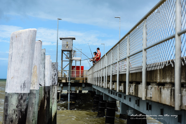 栈桥很多人在钓鱼,天气不错,但是一会就下起了雨浇了我们透心凉
