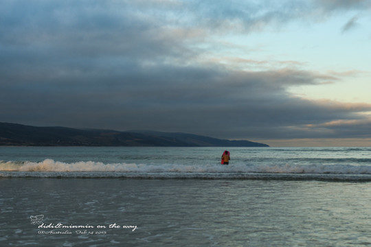 怎么来澳洲也得下海玩玩啊,借了老奶奶的幼儿冲浪板,冲啊,水还真凉,找到了冲浪的感觉,有大板子应该能坐起来。没衣服真不行胸前都磨破了。