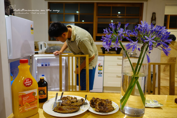 晚饭我们在超市采购了澳洲牛排两块3澳和羊排3块也是3澳多,很便宜。拿回家加工一下,温馨浪漫的澳洲牛排大餐就这样完成啦。
