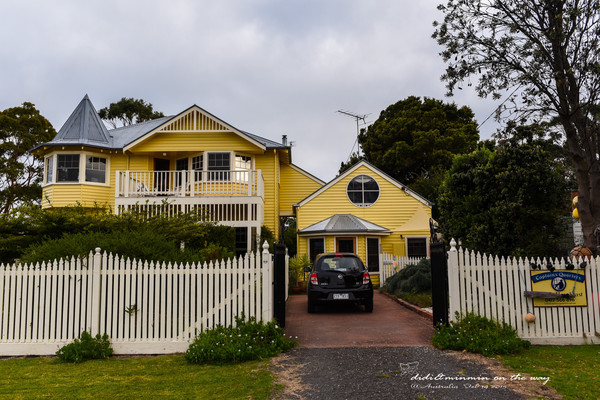 傍晚时分,我们到达Apollo Bay的家,这栋黄色的小别墅就是我们今晚的家