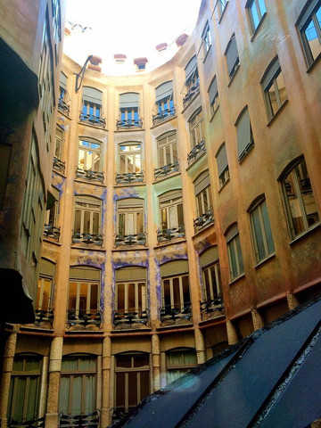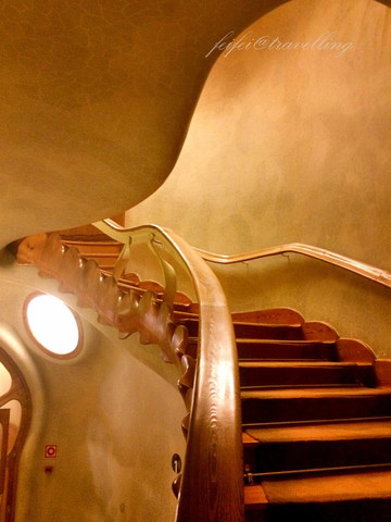 出发之前就知道高迪,趋于对表面的认知,以为他是一个富有奇思妙想的美学设计师,精于对线条的改造,精于将建筑赋予生命感。到巴塞罗那参观一个又一个的高迪建筑之后才真正的折服,高迪可不是随手画一个草稿跟建筑师说我要这样那样,而是在建筑力学上也多有贡献,没一个设计都是实用型设计,并且非常巧妙的考虑光学元素,将一天中光线投射与墙面颜色变化皆考虑在内。不仅如此,连建筑内的家具陈设,甚至是窗户把手都是经过高迪自己设计得,非常和谐并且符合人体工学。