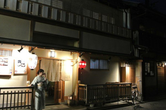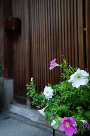 慢慢包抄回花间小路,此时已经华灯初上了。门口的摆花,悬挂的灯笼,虚掩的房门,这里面有多少故事。。。。。。京都是日本传统文化保留最好的区域,祗园附近更甚,也因为如此,吸引了全世界的游客。