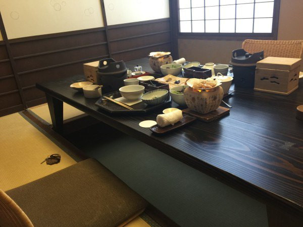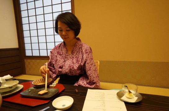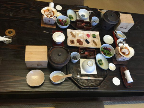 沿着小路走回酒店,品尝祗园舞风馆酒店为我们准备的日式早餐。餐厅有开放式厨房,环境优雅。慢慢品尝完早餐后,我们回房整理了下,11点离开了酒店,前往JR京都站。叫酒店帮我们预约的出租,酒店工作人员一直把我们送到车上。