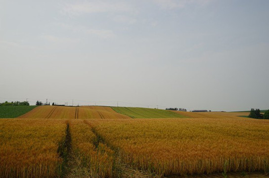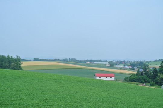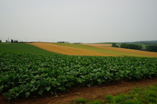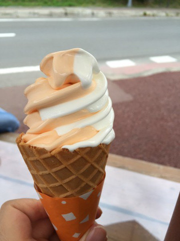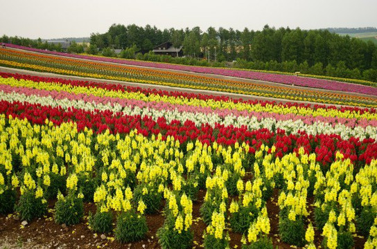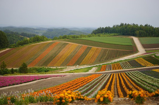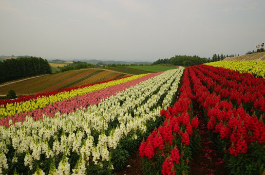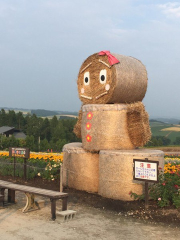 富良农场在中富良野,远远就看到那个标志的热气球。一大片薰衣草田映入眼帘,美哭了。7月中旬是北海道富良野熏衣草最美的季节,游客也很多,虽然此时天气不算很好,云有点厚,可是一点也不影响这成片的美景。富田农场里不仅有成片的熏衣草,也有其它各色美得不知名的花,完全是花的海洋。(魅力四射)到了富良农场,自然少不了品尝一下著名的冰淇淋。我们点了双色的哈蜜瓜,320円一个。北海道农业畜牧业发达,牛奶味道很好,冰淇淋味道自然很纯正。