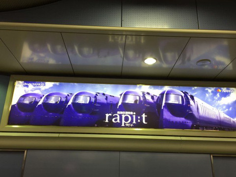 酒店33楼用了丰富的早餐后,我们立即退房了。沿电梯到1楼购买南海电铁直达关西机场的票(1130円),我们的时间刚好可以坐8点30分的RAPID 特急。再次感慨:南海瑞士酒店得天独厚的地理位置,真是太方便了。虽然价格有点小贵--68000円一晚 总算节省时间节省体力吧!