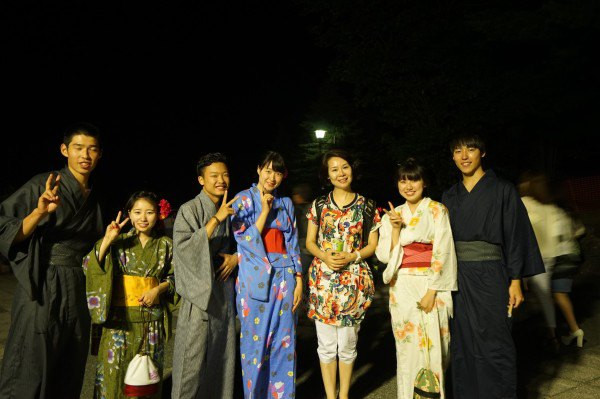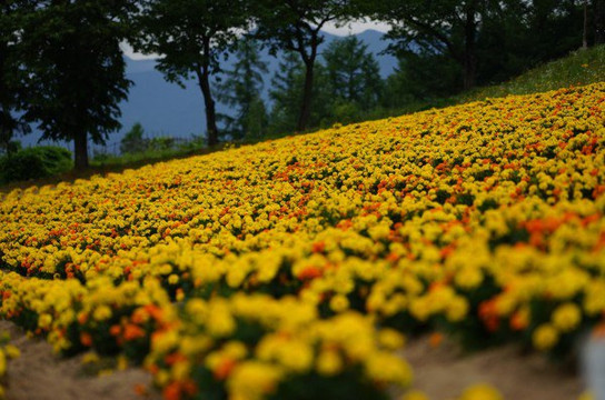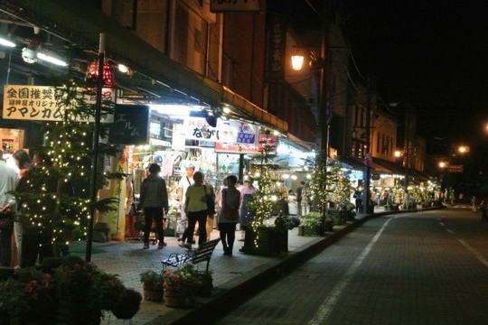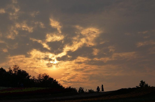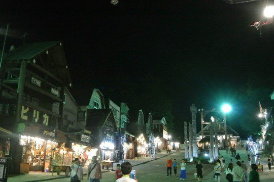 兴奋之余,准备离开,才发现工作人员已经下班了,我们已经错过所有下山的交通工具了。由于看到一片花海太亢奋,我们也竟一点也想不起来时的路了。幸运的是碰到了一家三口自驾的日本人,我们用英语向他们问路,可是显然他们听不懂我们的话。于是拿笔写我们想去看的“花火”,再加上一番身体语言后,他们终于懂了,并且非常热情地用车送我们到了晚上花火大会的会场,真的是不胜感激!