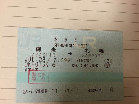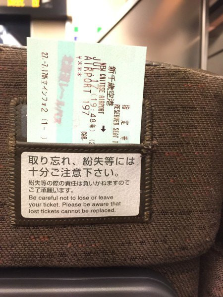 车票基本搞定后,我们就坐上了从新千岁到札幌的快速列车。指定席都会给一张指定座位的票,其间JR工作人员会来查座位票。可以把票放在前排座位靠背后面的小夹袋里,然后安心休息。很人性化设计有没有?