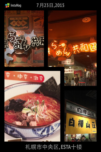 走出JR站左边就是ESTA,我们直奔十楼的拉面共和国的白桦山庄--网友们许多推荐。稍微排了下队,就轮到我们了。我们点的是号称激辛(最辣)的,大块的猪肉竹笋,味道确实不错,还有免费无限量煮鸡蛋供应。