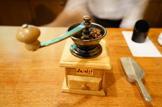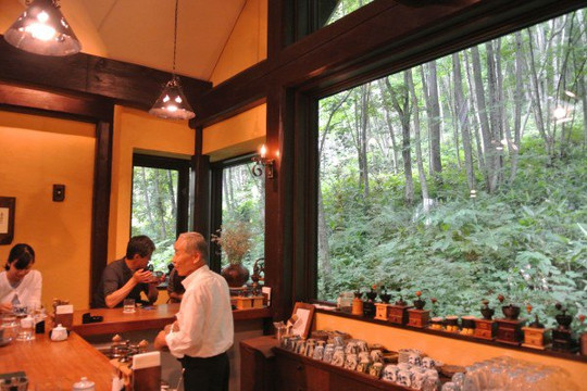 大概中午时分,我们来到了著名的“森之时计”咖啡屋用午餐。这个座落于森林中的咖啡屋,以其环境优美和客人可以自己磨咖啡豆著名。自制咖啡豆必须要选择吧台的位置,我们稍等了一下位,就坐在吧椅上开始手磨咖啡了。咖啡豆磨完后,老爷爷不急不徐地为每一位客人泡制咖啡。听着舒缓的背景音乐,品着手磨咖啡,静静享受这悠闲时刻---谁说旅行就一定要急吼吼地赶路,我们也可以慢下来,细细品味出不一样的旅途心情。