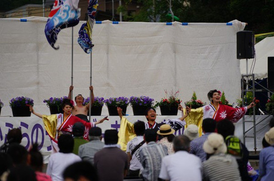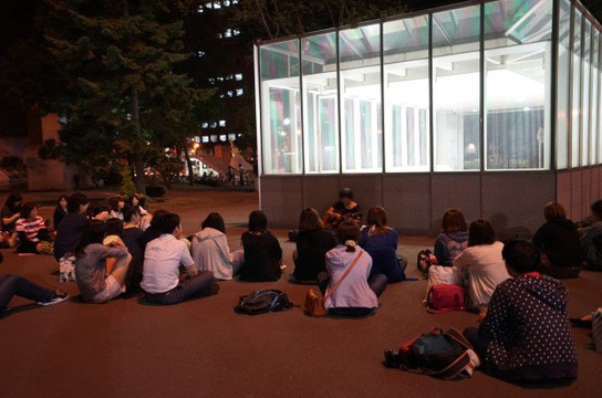 顺着札幌电视塔方向前行,来到了,年轻人正在进行一个夜场表演,观众很投入地坐在地上喝彩。晚上9点半来到SAPPORO CLASSIC BEER GARDEN准备来个有名的札幌啤酒,可是被告知时间太晚已打烊了。最后我们来到电视塔楼下的炭烧居酒屋,点了烧烤秋刀鱼,混合烤串,拉面,枝豆,还有加冰的自制酸奶作为晚餐,味道很不错,3800円。时间原因,没有上电视塔,留着从知床回来再去吧