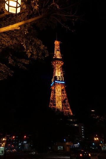 向着大通公园的方向,大概走了20分钟,我们就到达了札幌电视塔。在三楼买了参观票720円每人的门票,直接从电梯上塔顶。电视塔高总高147米,外观看上去象埃菲尔铁塔,建于1957年,是大通公园的地标建筑,在90米高的观景台可以将这座城市的美景尽收眼底。札幌已经夜幕降临,繁华的都市,闪烁的霓虹灯,街道上匆匆行人,如此美丽的夜景。。。。。。想到明天就要离开北海道了,还有些不舍呢