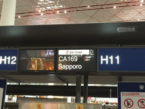 当前情况下,确保时间能完成拟定的行程最重要。立即决定春秋成都飞大阪退票。查到北京当晚9点15分有经停首尔飞札幌的航班,于是马上从携程上预计了下午4点国航成都飞北京(机票每人1490元),当晚9点15分大韩航空北京经停首尔飞札幌的航班(机票2256元/人)。匆匆收拾一下,下午2点直奔双流机场。好在忙中没有出错,先还是去了T2取了我租的无线路由器,然后又直奔TI CHECK IN。成都天气状况良好,可是飞机还是晚点了。5点钟才开始登机,时间够悬的。郁闷的是6点半才开始起飞,当时坐在飞机上的感觉就不太好了,感觉下班飞机很可能接不上