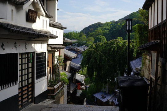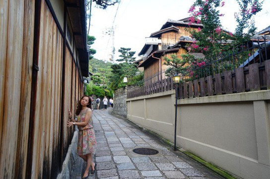 下午5点过钟,太阳没那么毒了,我们重整旗鼓,选择出发。沿着石塀小路,方向走,这个时候的游客少了许多,小路上走着也非常舒服了。照相也再也不是大合影--你装饰了别人的背景,别人装饰了你的风景了 。静静地走在有着漫长岁月痕迹的石板路上,落日余晖洒在屋顶,洒在路上,仿佛时间都停留在这一刻---一切都是那么美好--这就是我想寻找的京都的感觉!(爱)