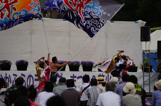 一年一度的富良野熏衣草花火大会,每年夏天举行。我们去这周刚好碰上,估计这也是7月18-20号富良野住宿相当紧张的原因吧。花火大会开始前,有一些年轻人表演热身舞蹈,花火大会晚8点准时开始。这时候天公不作美,开始下雨了,并且雨越来越大,可是这一点也不影响前来观看花火的观众的热情,大家冒着大雨看着烟花表演,烟花表演大概持续了一个小时。雨下得太大,我们的伞不堪负荷,于是看完表演后,在倾盆大雨中我们打车回了酒店。(车程比较远,打车3380円)