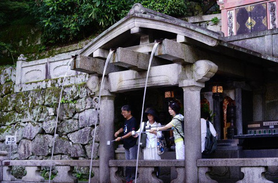 音羽瀑布,流水清洌,终年不绝,被列为日本十大名泉之首,清水寺之名也由此而来。