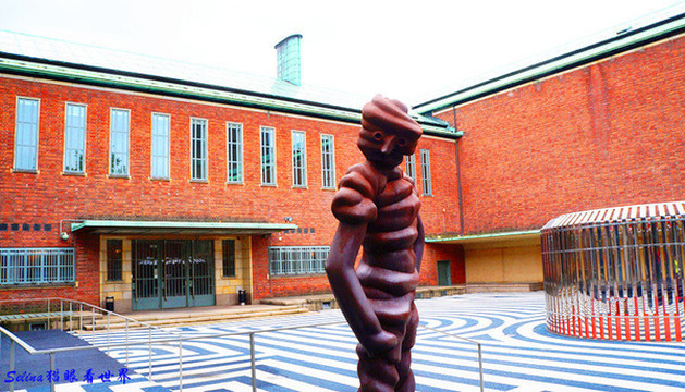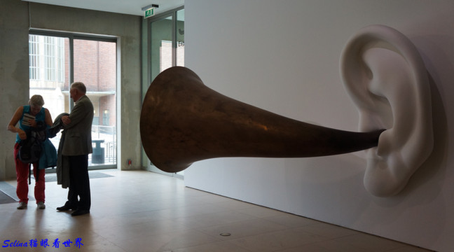 走进博伊曼斯?范伯宁恩美术馆,红砖绿顶的建筑物,让我一度怀疑美术馆的设计师是瑞典人?印象中斯德哥尔摩市政厅便是这样的建筑代表。左边的铜人难道是米其林轮胎赞助的?俨然是白色轮胎人的减肥版。看到正面后,却否定了这个想法,因为他更像是匹诺曹的兄弟。进入美术馆大厅,耳朵里长喇叭是个什么概念?不太懂艺术的我,只能评价其为“现代主义”的体现。