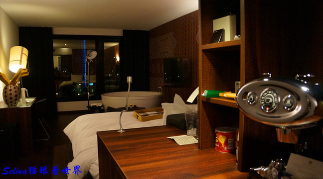酒店的独特之处还在于配备了情绪照明设施!通过迷你iPad平板电脑可以随意改变客房内的颜色和温度,遥控电视以及百叶窗和遮光窗帘。